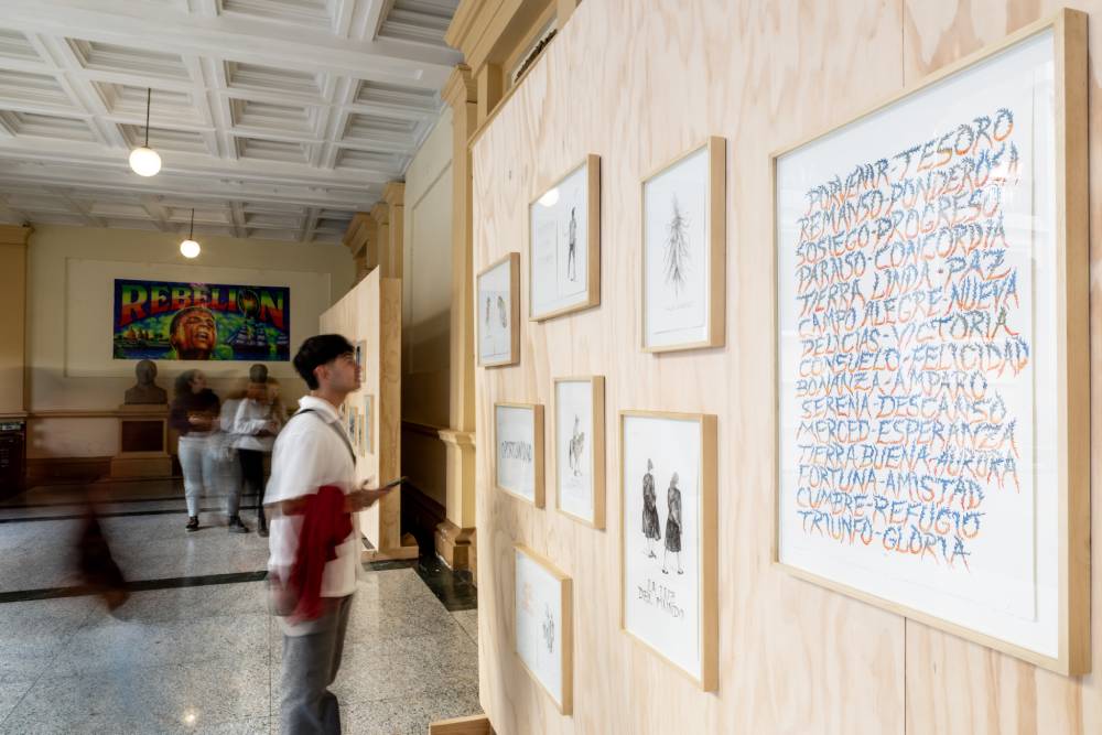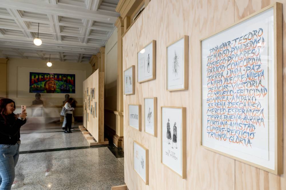 En BOG25, Mancera retoma esta idea, pero centrada exclusivamente en Bogotá: “Me dediqué a recorrer Bogotá. Afortunadamente, he vivido en 12 barrios distintos, distribuidos en varias localidades, lo cual me permitió tener múltiples puntos de partida y, al mismo tiempo, comprender la complejidad y las dificultades de la ciudad. Me propuse encontrar lugares con nombres cargados de significado y, en este proceso, conformé dos grupos: por un lado, aquellos que evocan, de alguna forma, la idea de felicidad: Nuevo Horizonte, Campo Alegre, El Paraíso, El Lucero, El Retiro, La Paz, El Encanto, El Refugio, La Gloria, El Porvenir, La Suerte, Delicias, Tierra Buena, La Serena, La Fortuna, entre muchos otros; la lista es extensa. Y por otro lado, barrios cuyos nombres, igualmente poéticos, contribuyeron a dar forma al proyecto: La Estrellita, La Cita, El Rocío, El Oasis, El Retazo, Los Cristales, Matatigres, El Reflejo, etc.”