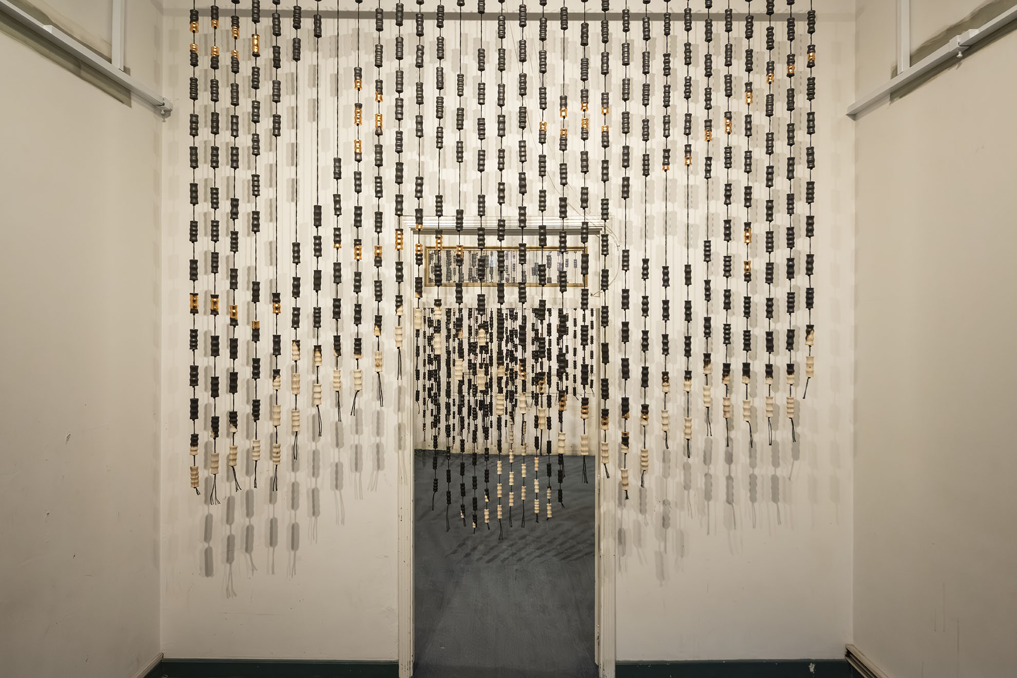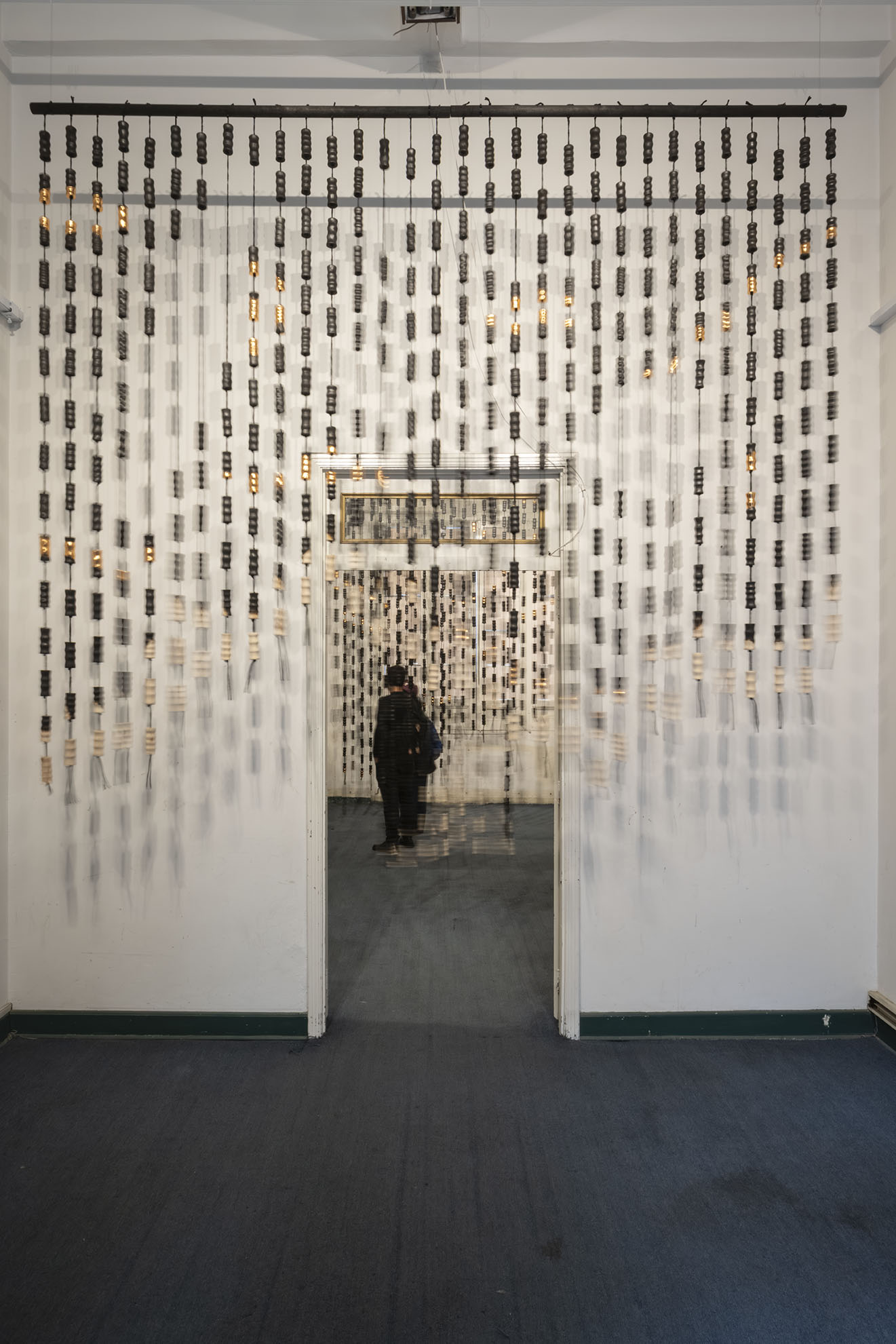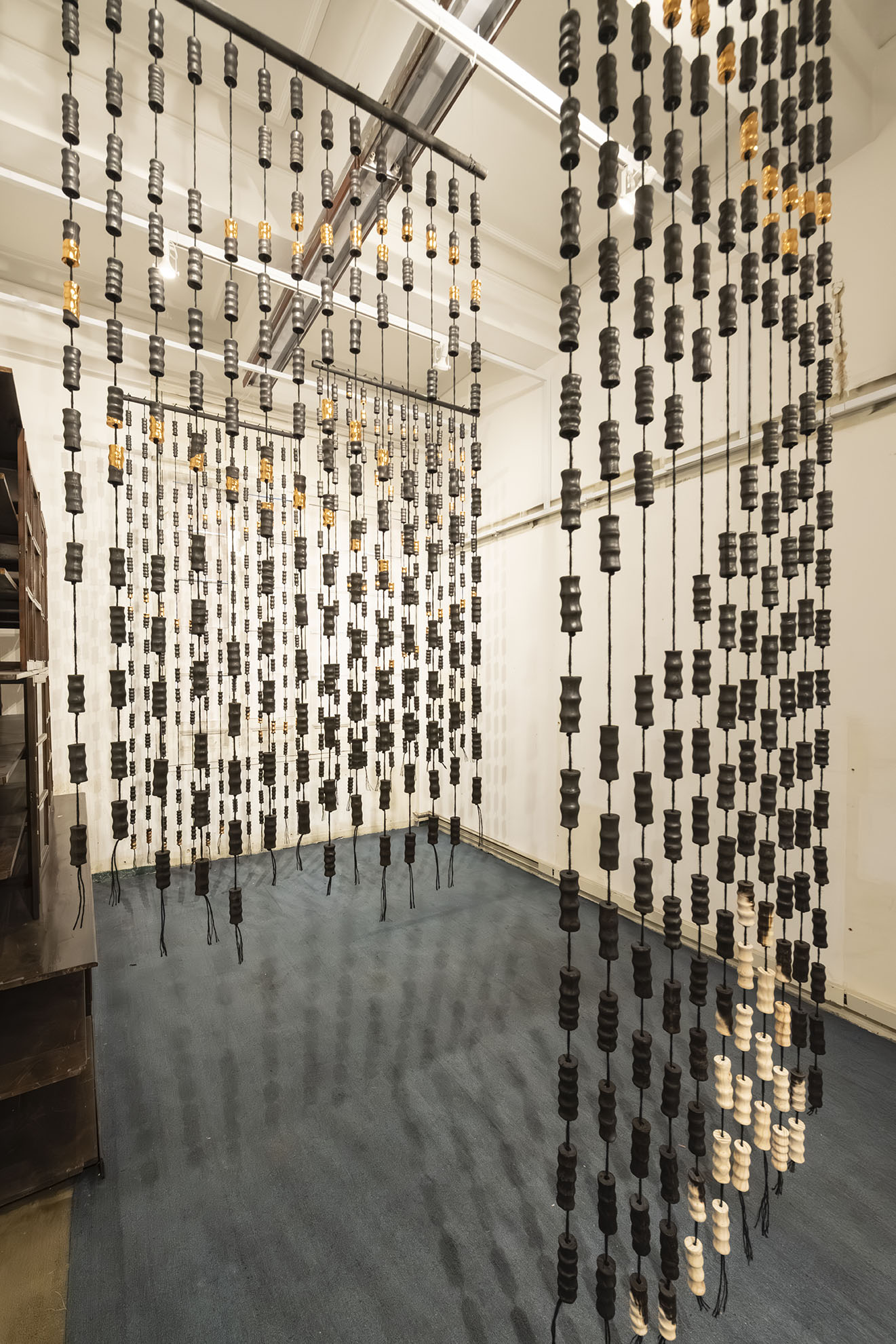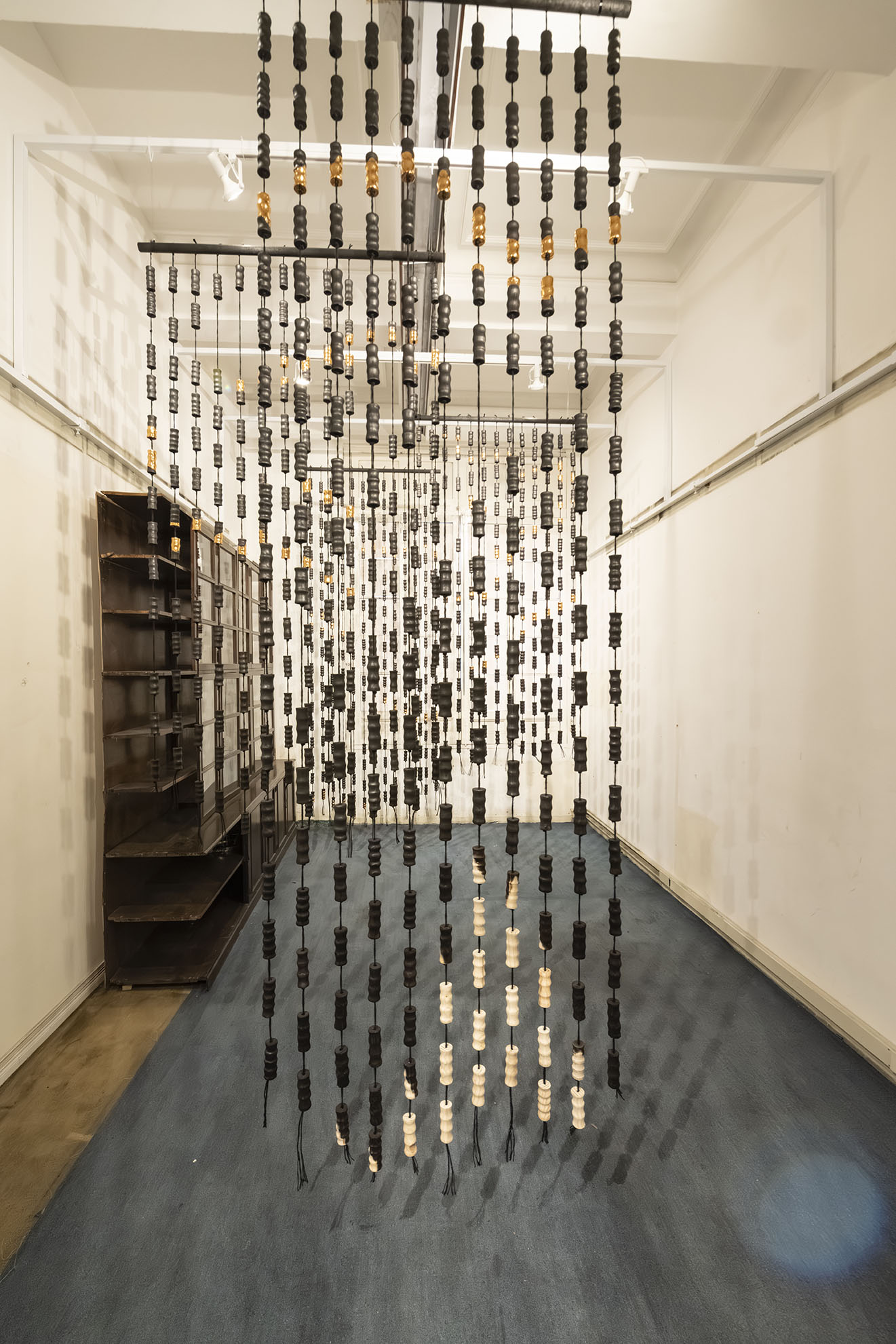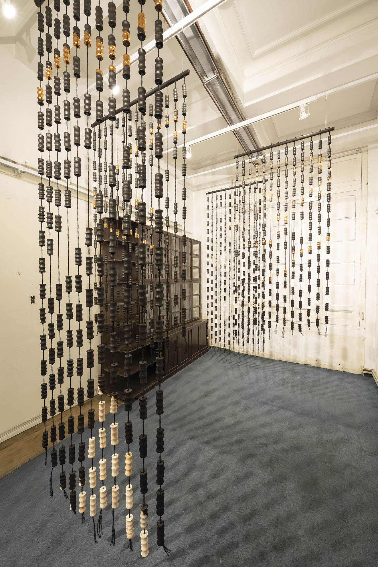 Para BOG25 presenta Memento mori, una obra compuesta por un tejido que articula fibras y piezas de madera semiquemadas. La instalación recorre el espacio, enfatizando los rasgos de la arquitectura y conformando una malla que combina espacios llenos y vacíos a partir de un gran número de piezas modulares realizadas artesanalmente. Estos vacíos permiten al espectador interactuar con el entorno, los materiales y su propio cuerpo. Los materiales empleados, así como su transformación física, remiten a un futuro pesimista respecto a la preservación de la vida en el planeta. Las prácticas extractivistas que sustentan gran parte de la economía actual impiden imaginar con esperanza futuros.