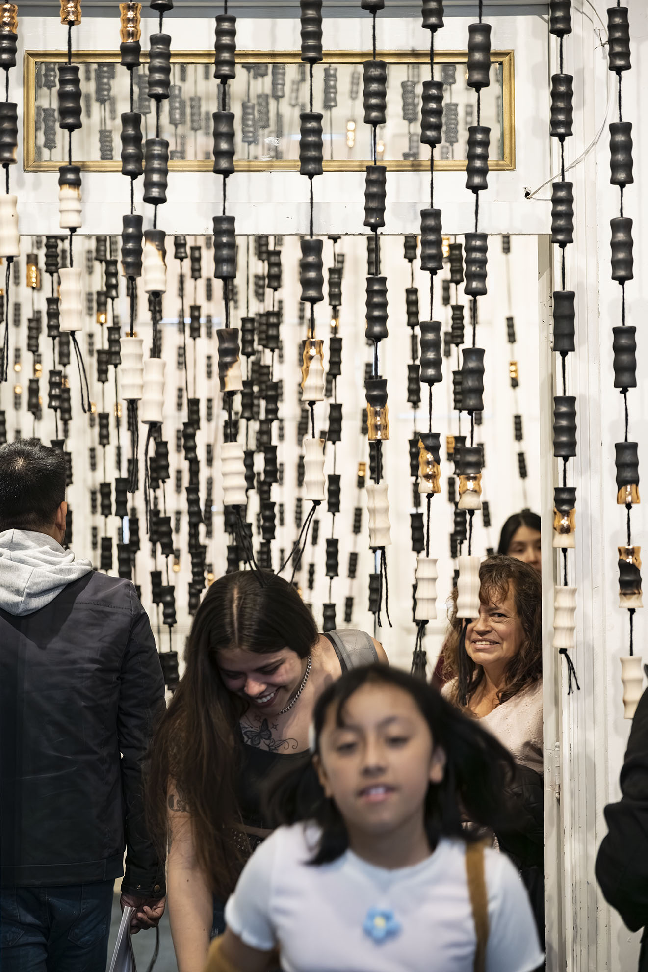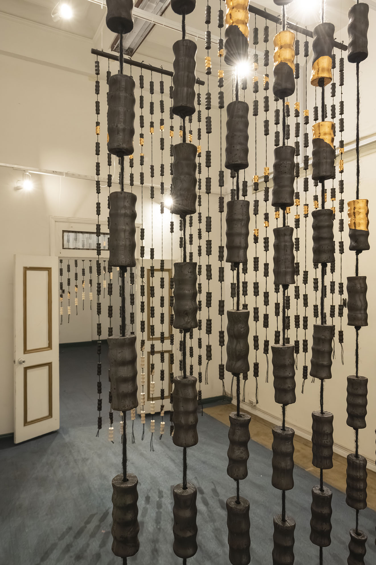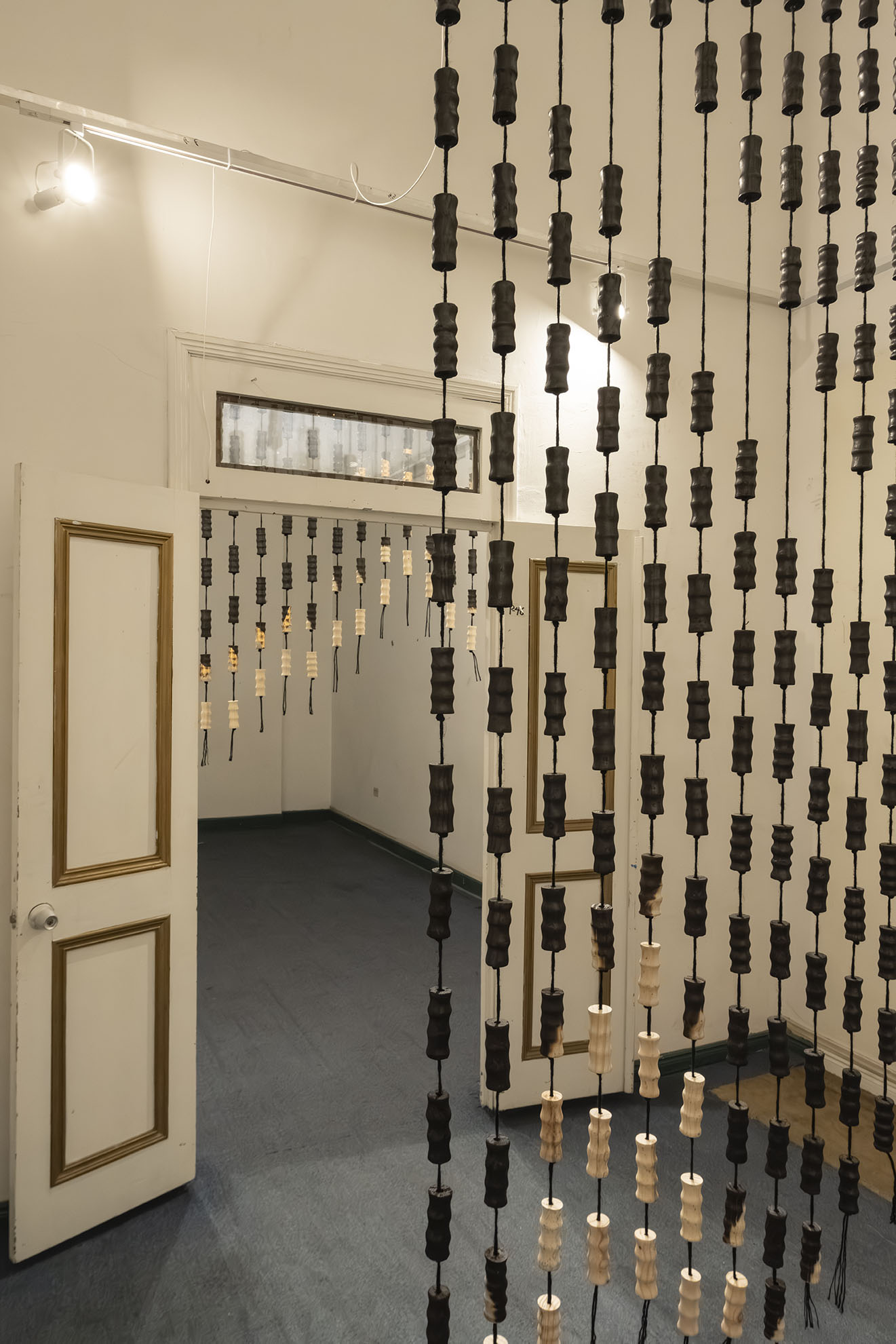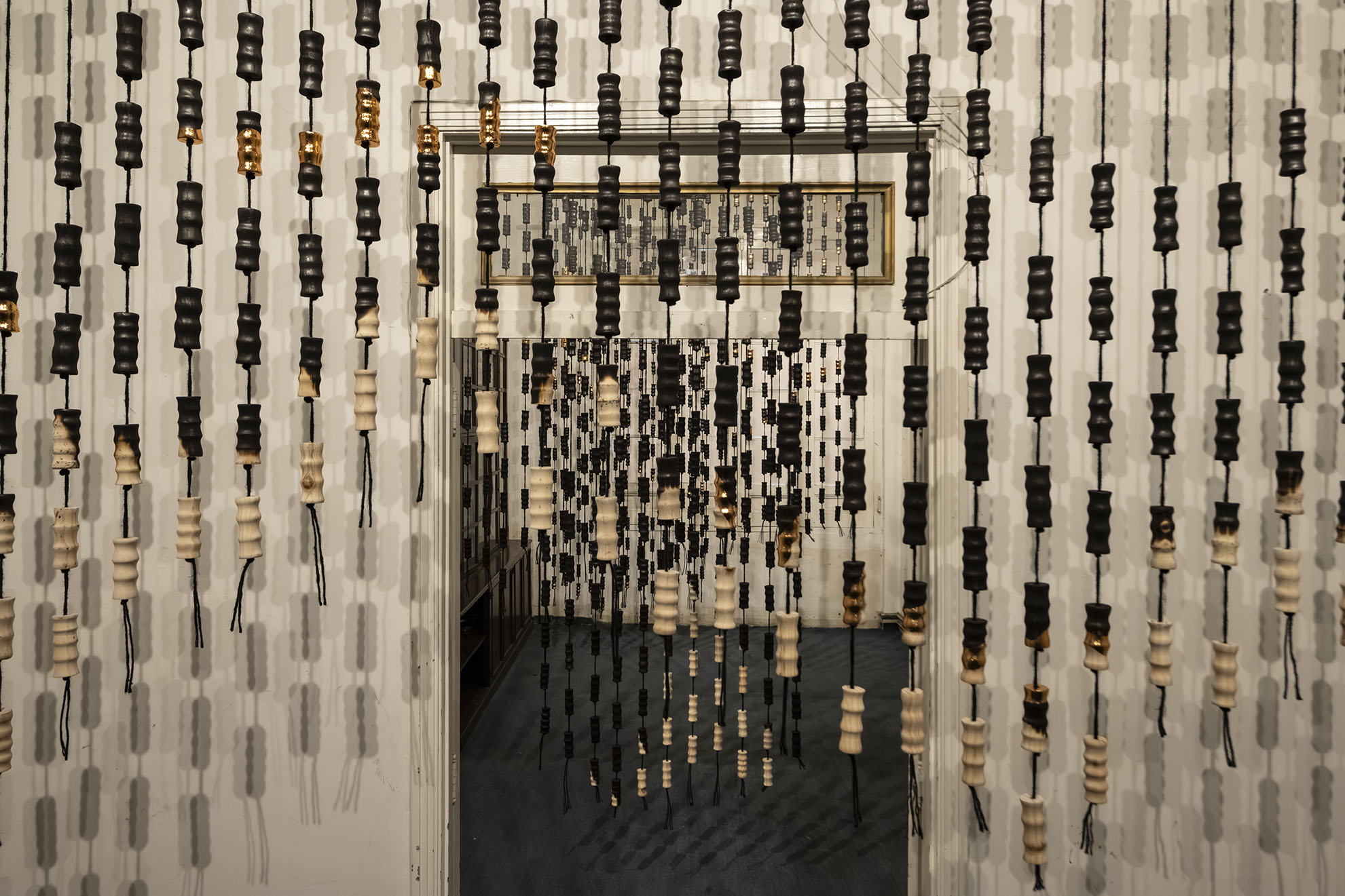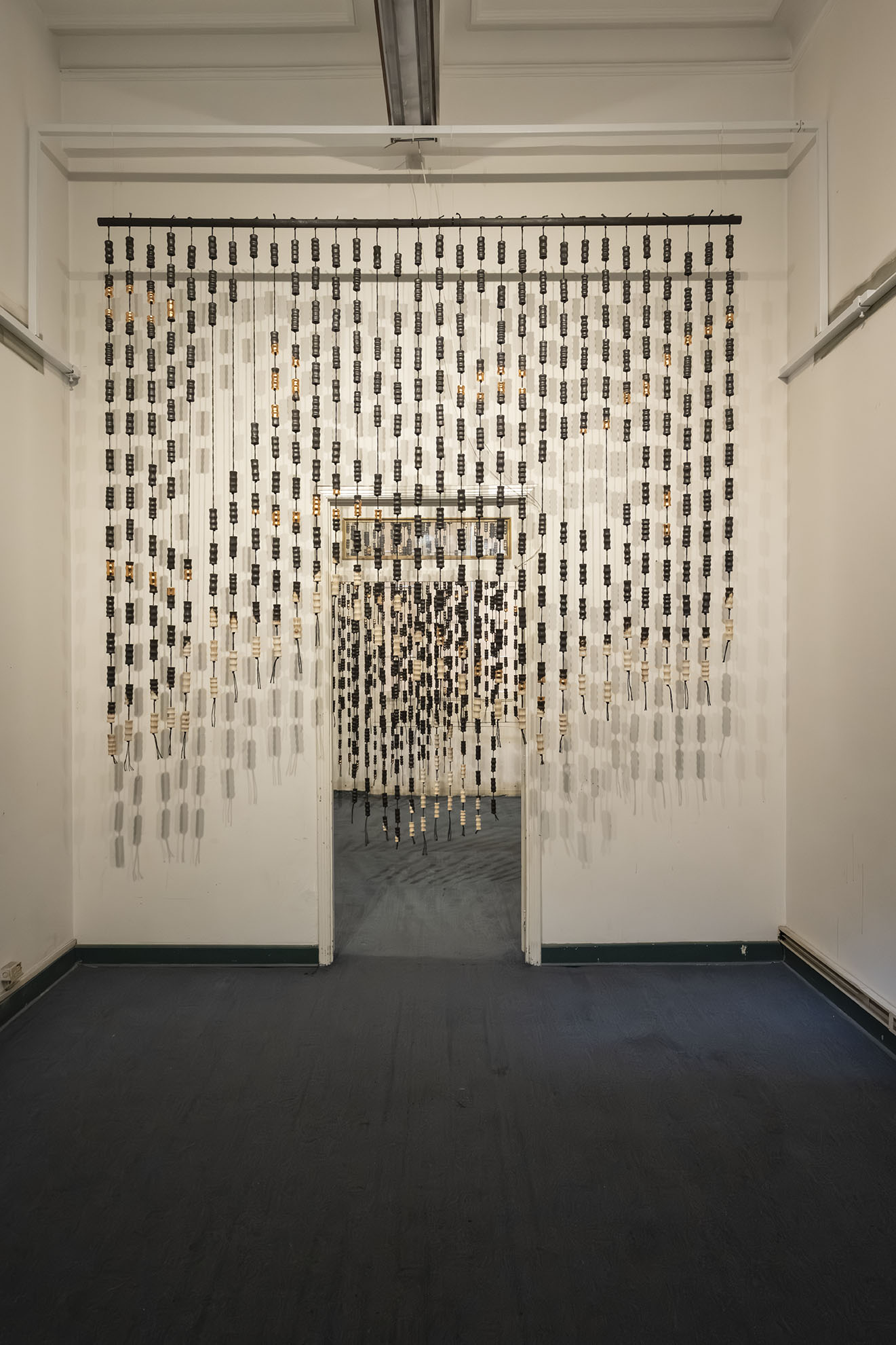 Para BOG25 presenta Memento mori, una obra compuesta por un tejido que articula fibras y piezas de madera semiquemadas. La instalación recorre el espacio, enfatizando los rasgos de la arquitectura y conformando una malla que combina espacios llenos y vacíos a partir de un gran número de piezas modulares realizadas artesanalmente. Estos vacíos permiten al espectador interactuar con el entorno, los materiales y su propio cuerpo. Los materiales empleados, así como su transformación física, remiten a un futuro pesimista respecto a la preservación de la vida en el planeta. Las prácticas extractivistas que sustentan gran parte de la economía actual impiden imaginar con esperanza futuros.