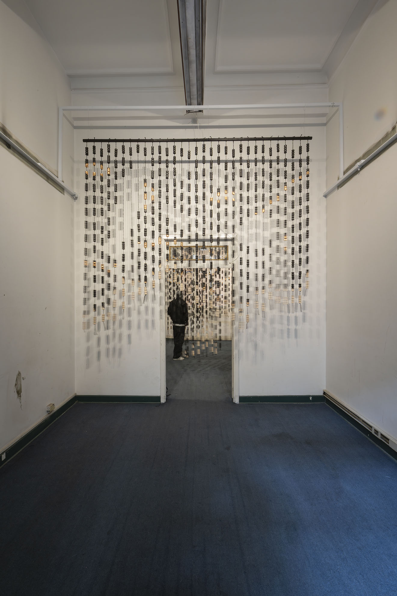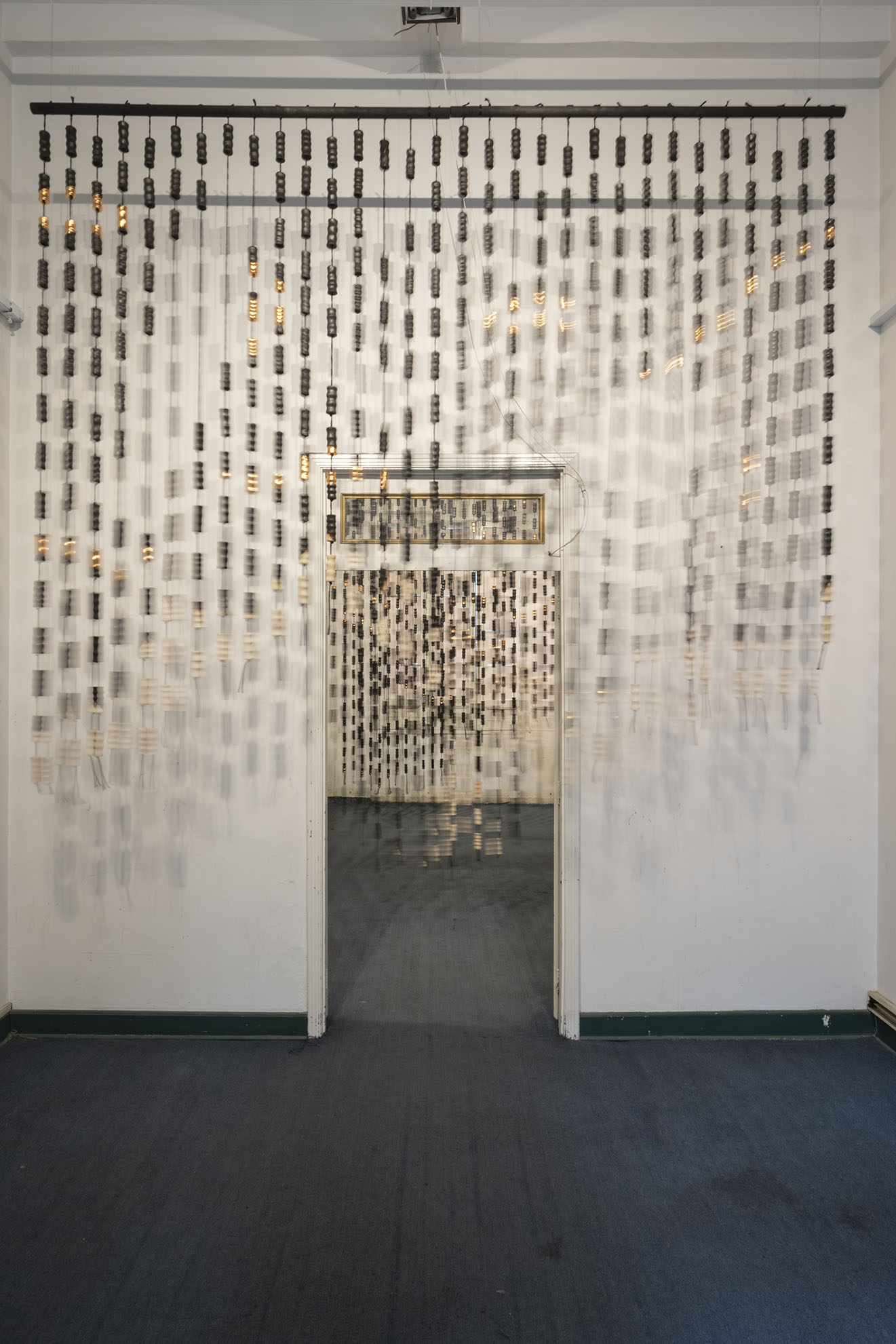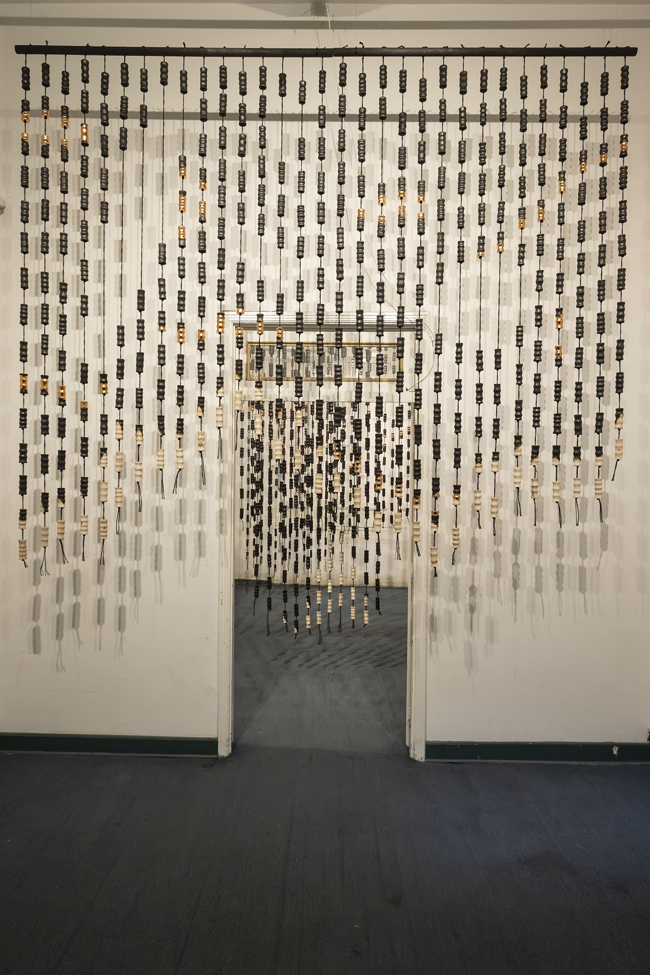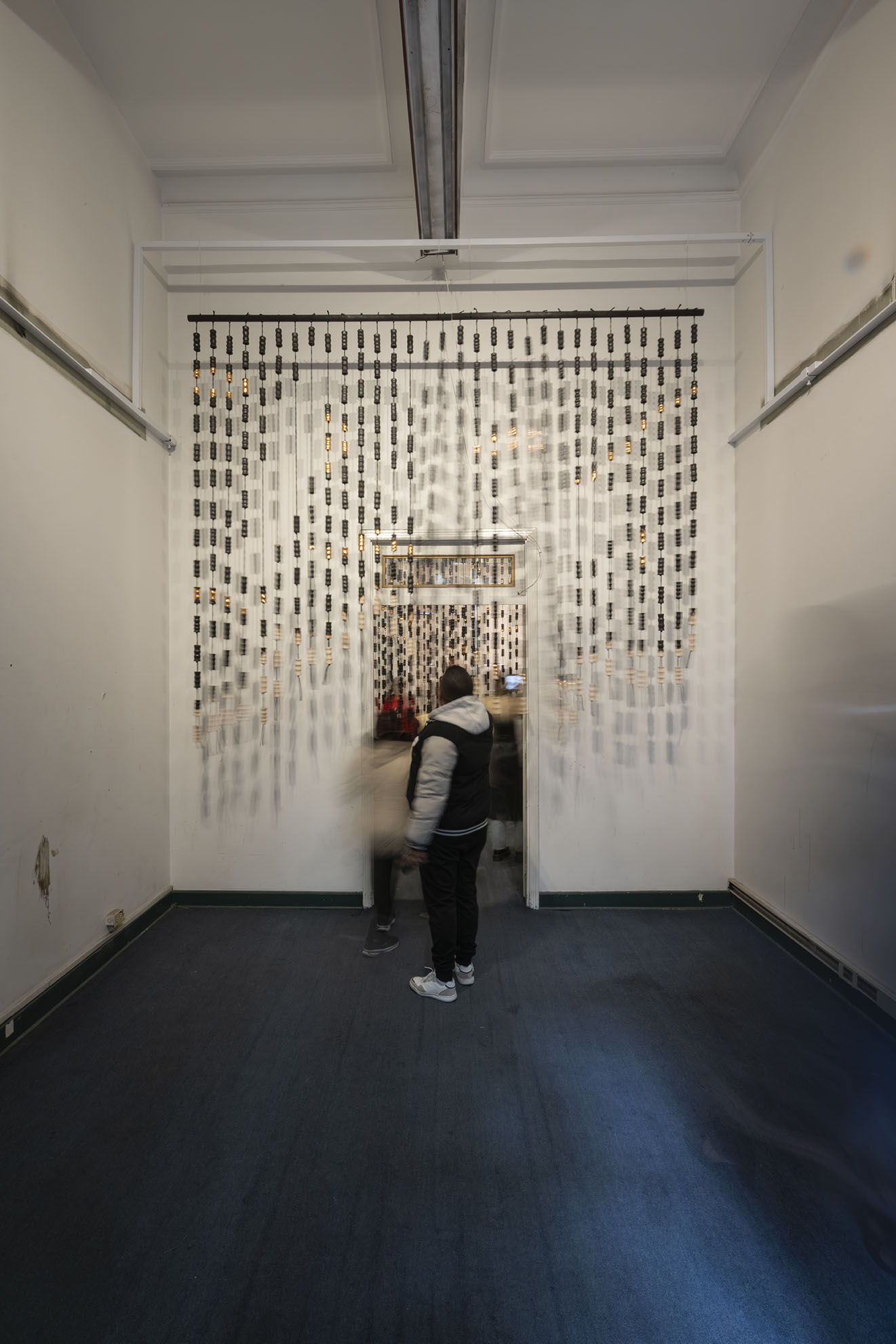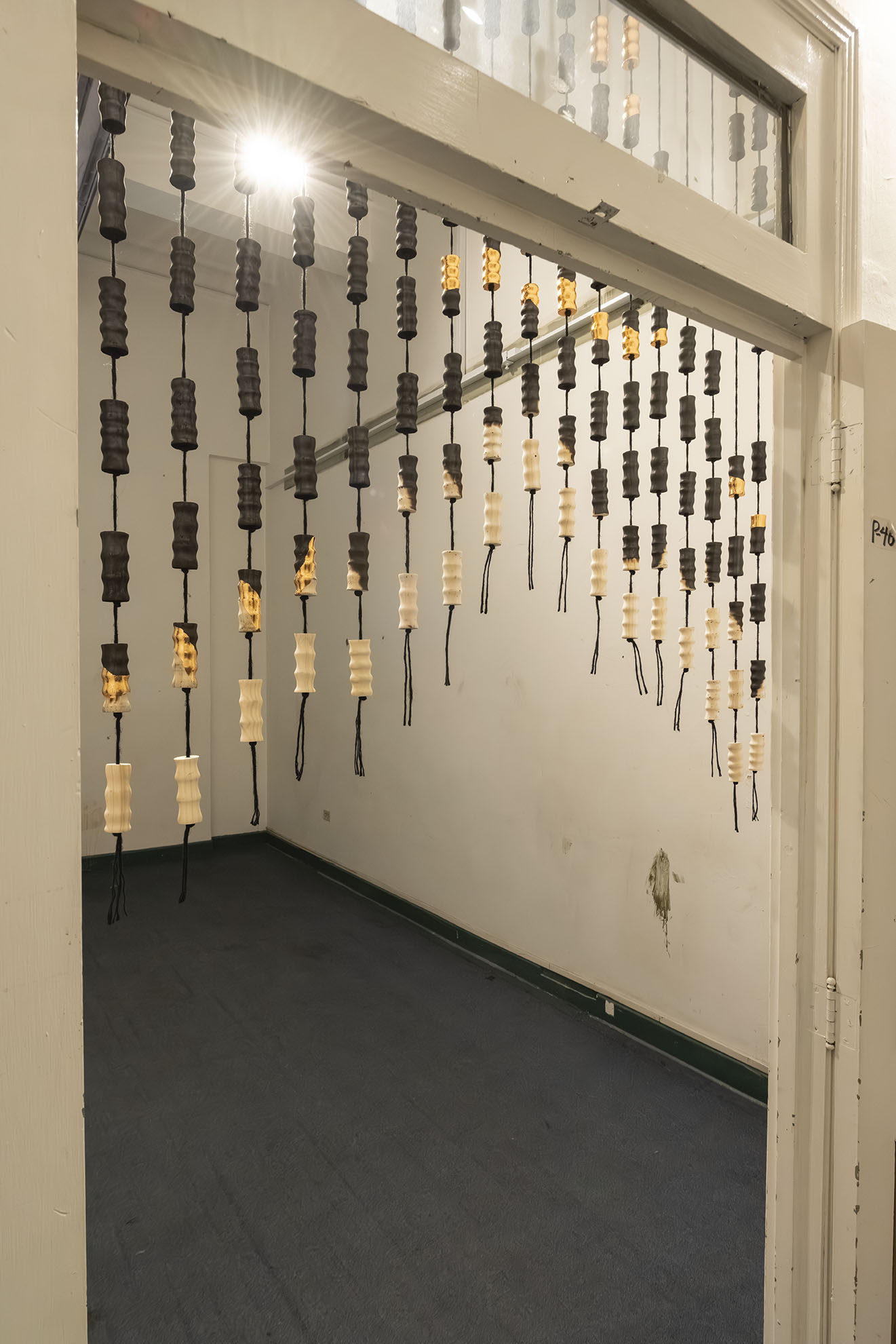 Para BOG25 presenta Memento mori, una obra compuesta por un tejido que articula fibras y piezas de madera semiquemadas. La instalación recorre el espacio, enfatizando los rasgos de la arquitectura y conformando una malla que combina espacios llenos y vacíos a partir de un gran número de piezas modulares realizadas artesanalmente. Estos vacíos permiten al espectador interactuar con el entorno, los materiales y su propio cuerpo. Los materiales empleados, así como su transformación física, remiten a un futuro pesimista respecto a la preservación de la vida en el planeta. Las prácticas extractivistas que sustentan gran parte de la economía actual impiden imaginar con esperanza futuros.