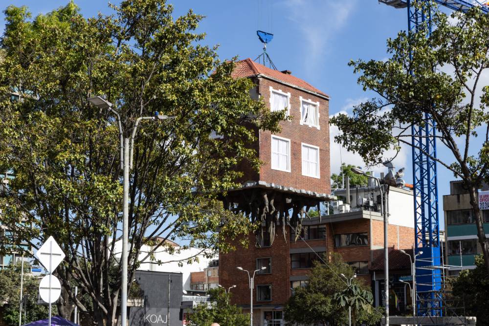 En Colombia, tener una casa propia no solo es un sueño, es también un acto de resistencia. Miles de personas han tenido que abandonar sus tierras, pertenencias y familias para huir de la violencia o de la falta de oportunidades. Esta casa en el aire se convierte en una metáfora de una ciudad que recibe a miles de personas al año que llegan con la esperanza de sembrar raíces y construir un futuro estable.