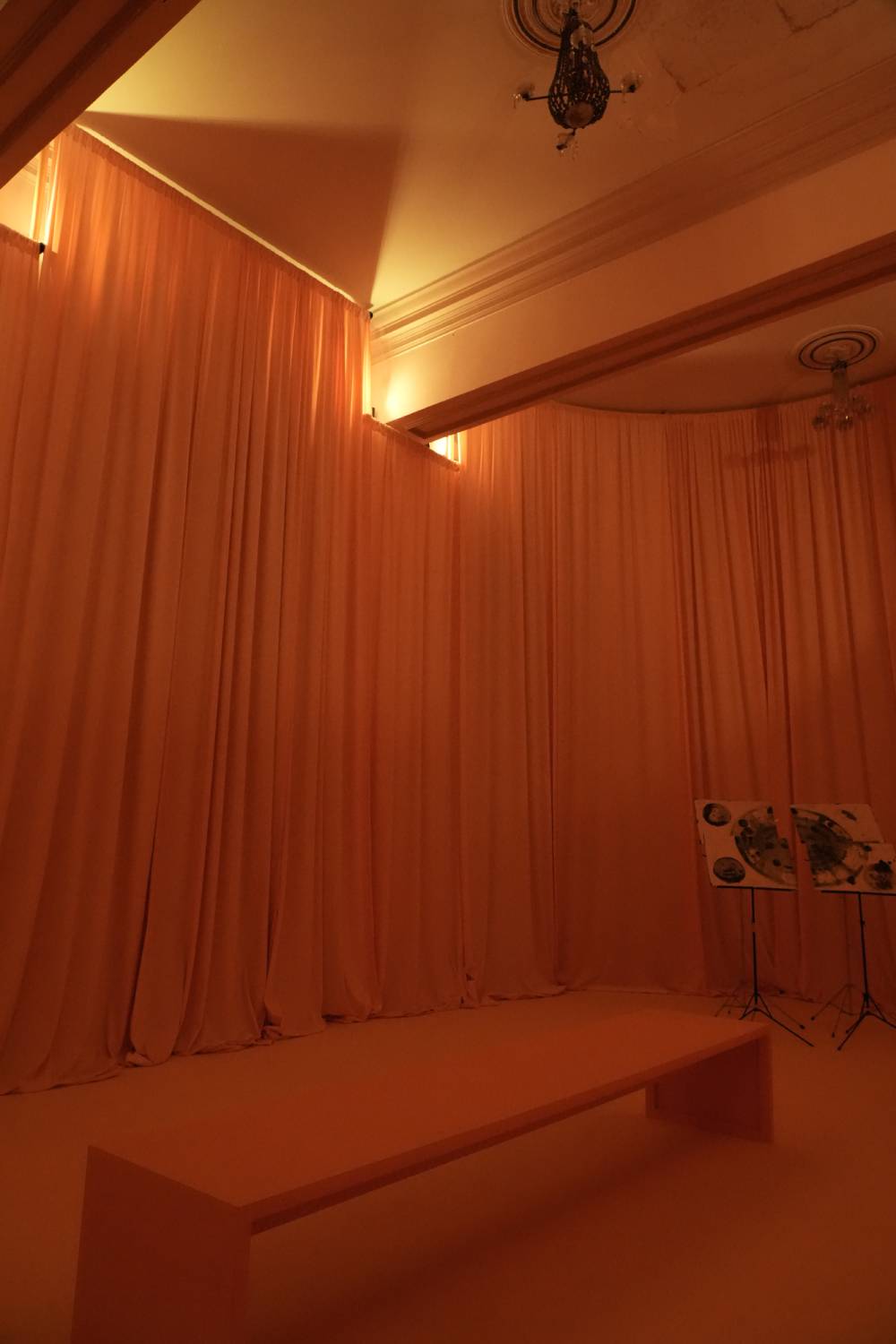 Composición acusmática de 16 minutos en 16 canales; acuario que contiene y distribuye una escultura olfativa desarrollada en colaboración con Ricardo Moya de IFF (International Flavors & Fragrances); y cuatro partituras en atriles (tinta sobre papel), todo dispuesto en un espacio monocromático amarillo iluminado con luz de espectro único.