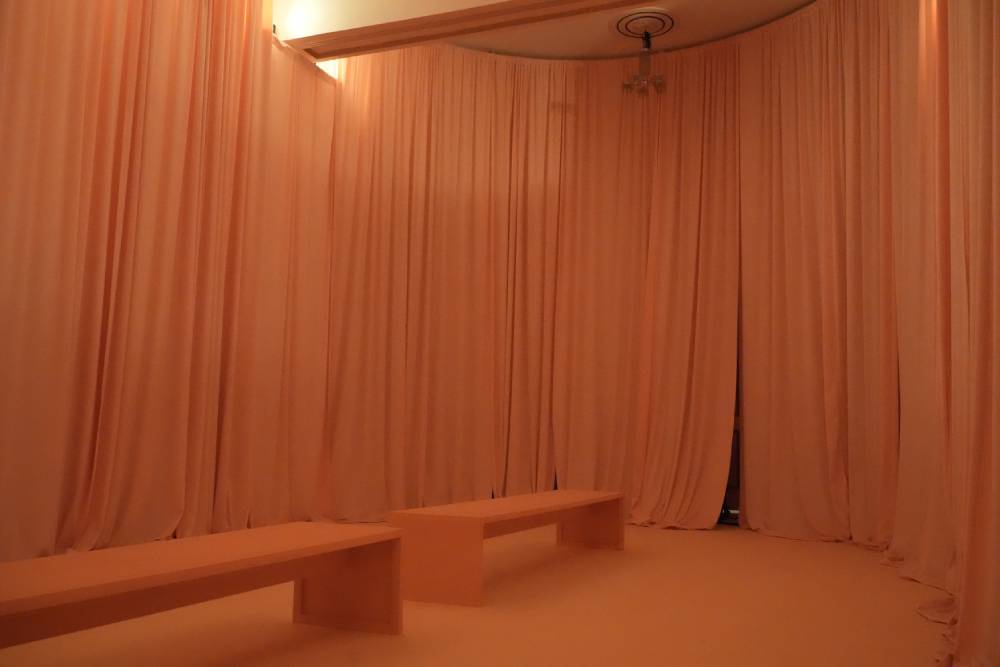 Preludio de arrullo – Darién, obra comisionada por BOG25, es una instalación compuesta de sonido y olor. “Mis pensamientos para esta obra se centran en la selva del Darién: una frontera natural entre Panamá y Colombia, declarada Patrimonio de la Humanidad y Reserva de la Biosfera, y considerada uno de los ecosistemas más biodiversos del planeta. Este lugar, rebosante de vida natural —hogar de miles de especies animales y vegetales— se ha transformado, en los últimos años, en un paso peligroso y decisivo para miles de personas migrantes que lo cruzan en busca de una felicidad soñada. La palabra Darién, en lengua cuna, significa ‘sol del horizonte’ o ‘sol poniente’; es también la hora en que se canta el arrullo, la canción de cuna, y el momento en que las cigarras entonan su canto. De ahí nace esta obra: como un preludio a ese canto nocturno que resuena entre la vida, la memoria y el tránsito.”